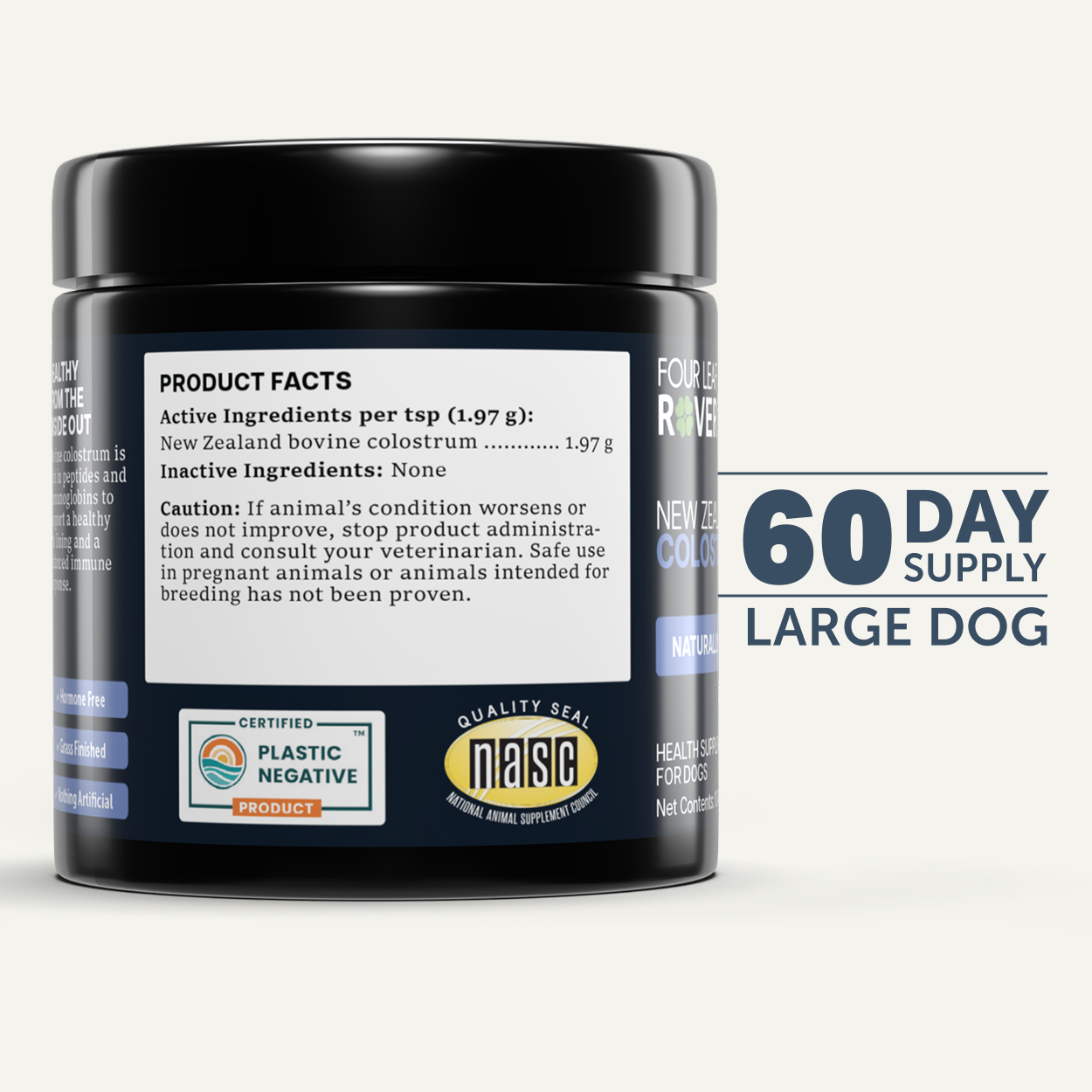 - Ethically sourced: Our small farmers make sure the calves get all the colostrum for the first 12 hours. This ensures the calves get the immune support they need before the colostrum is collected to share with dogs.